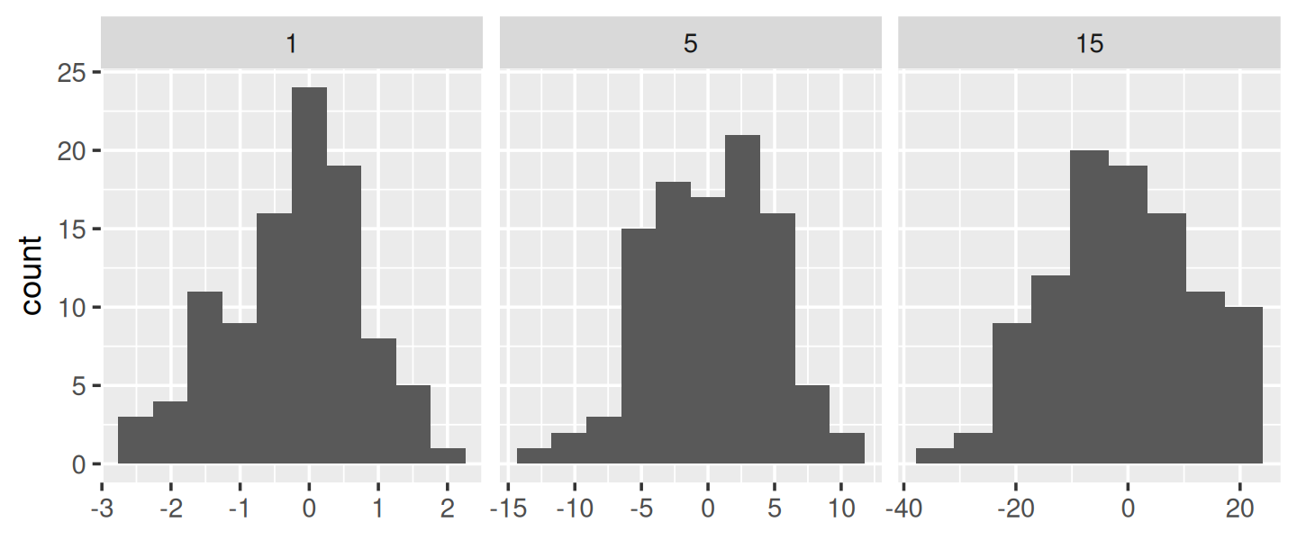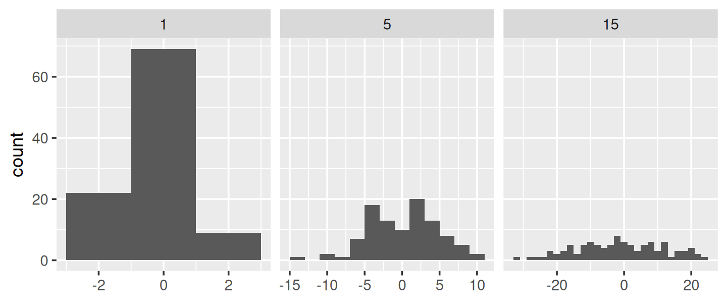Aprenderá un enfoque alternativo para el mismo problema en la Sección 19.7.4. En lugar de usar una fábrica de funciones, puede construir la función con cuasicomillas. Esto requiere conocimientos adicionales, pero genera funciones con cuerpos legibles y evita la captura accidental de objetos grandes en el alcance adjunto. Usamos esa idea en la Sección 21.2.4 cuando trabajamos en herramientas para generar HTML desde R.