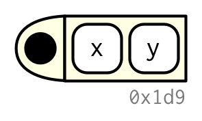 #> <environment: R_GlobalEnv>Dibujaré funciones como en el siguiente diagrama. El punto negro de la izquierda es el entorno. Los dos bloques a la derecha son los argumentos de la función. No dibujaré el cuerpo, porque generalmente es grande y no te ayuda a entender la forma de la función.