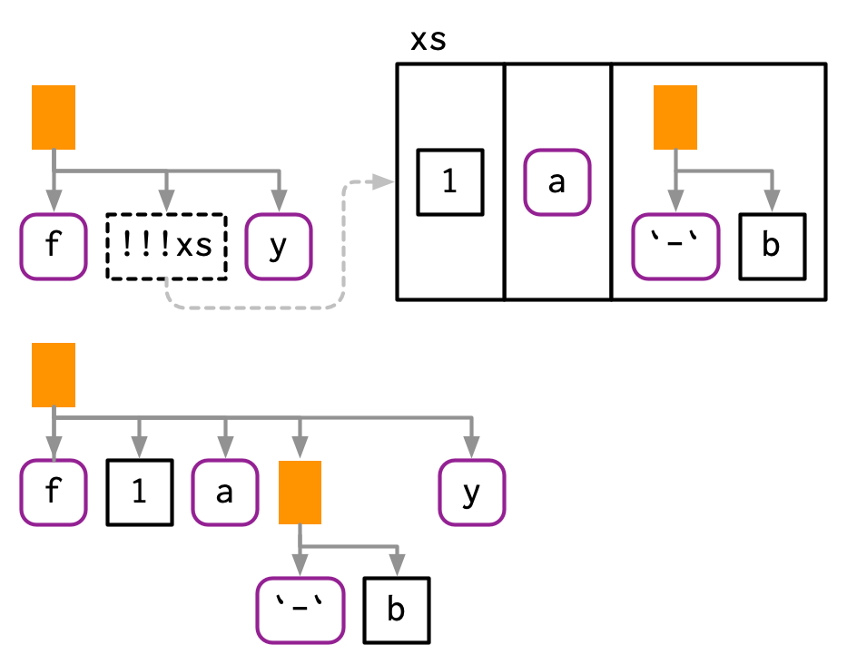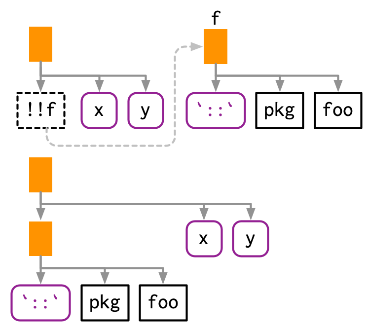 "x" <- 1,"foo"(x, y),c("x" = 1).↩︎Descubierto por Peter Meilstrup y descrito en R-devel el 2018-08-13.↩︎