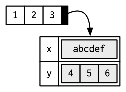 gc(): la “N” enNcellssignifica nodos y la “V” enVcellssignifica vectores.↩︎Algunos lugares en la documentación de R llaman a listas de vectores genéricos para enfatizar su diferencia con los vectores atómicos.↩︎