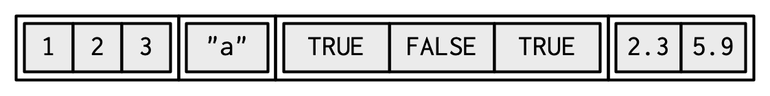 chr_var <- c("these are", "some strings")Cuando las entradas son vectores atómicos, c() siempre crea otro vector atómico; es decir, se aplana: