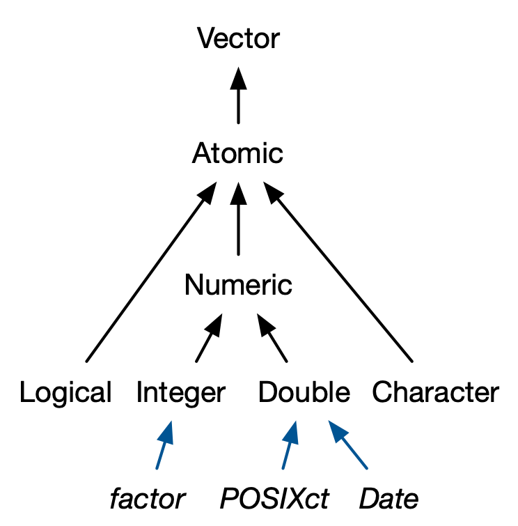 Este capítulo analiza la familia más importante de tipos de datos en base R: vectores1. Si bien es probable que ya haya usado muchos (si no todos) de los diferentes tipos de vectores, es posible que no haya pensado profundamente en cómo están interrelacionados. En este capítulo, no cubriré los tipos de vectores individuales con demasiado detalle, pero le mostraré cómo encajan todos los tipos como un todo. Si necesita más detalles, puede encontrarlos en la documentación de R.