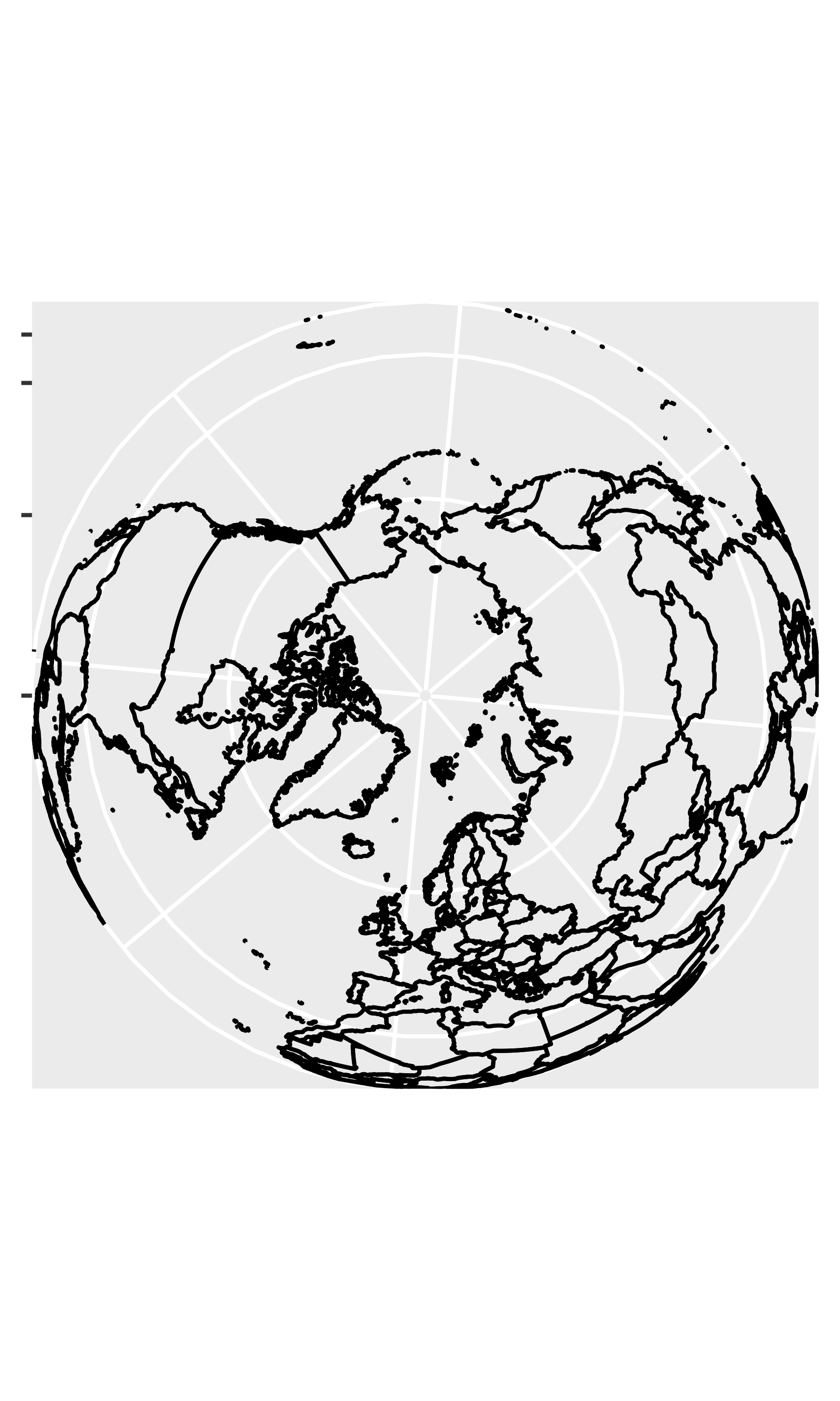 worldmap + coord_map("stereographic")