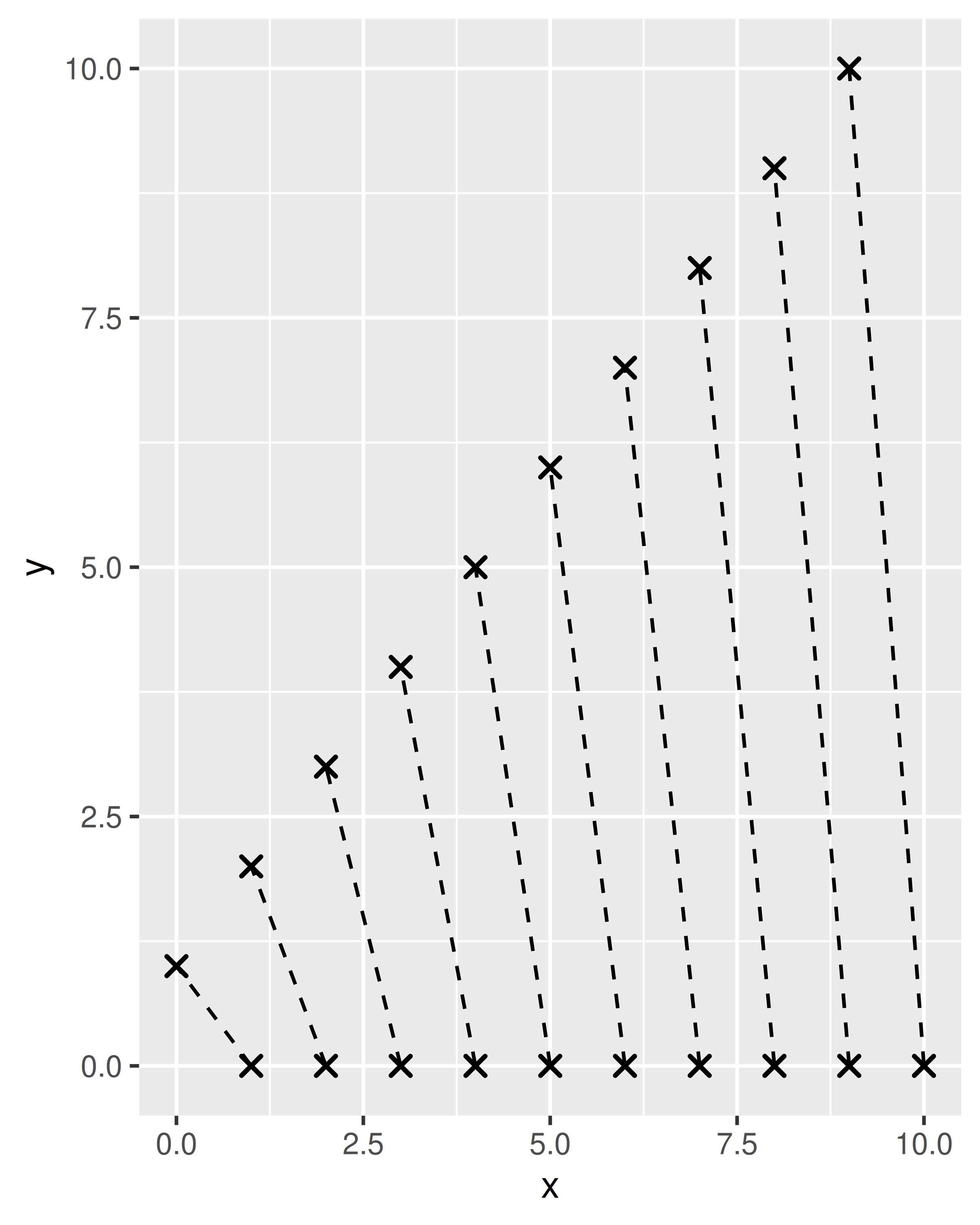 ggplot(df, aes(x, y)) + geom_point(position = position_jitter())
