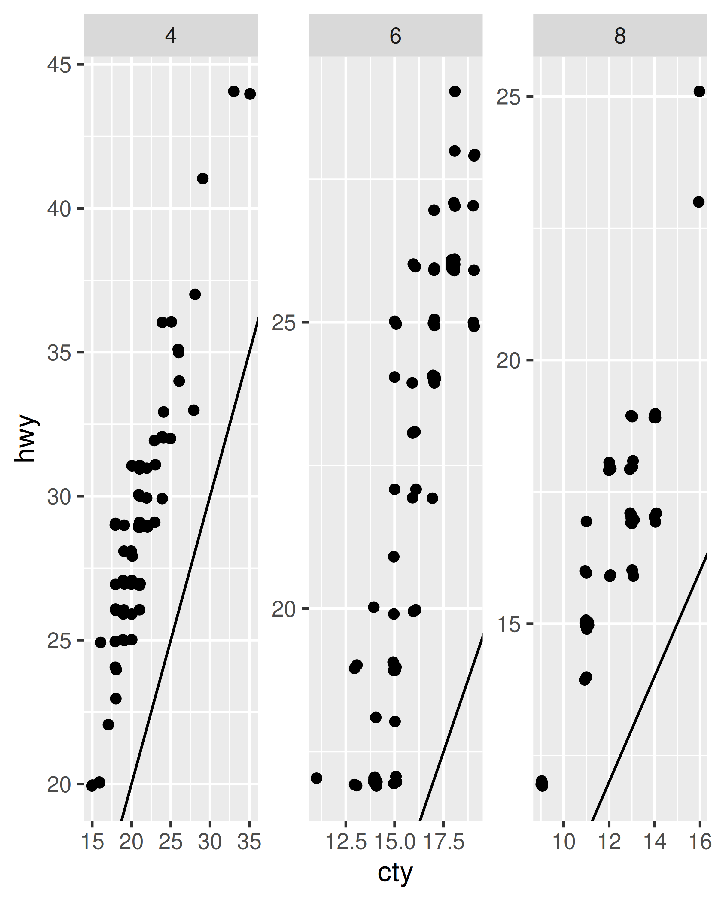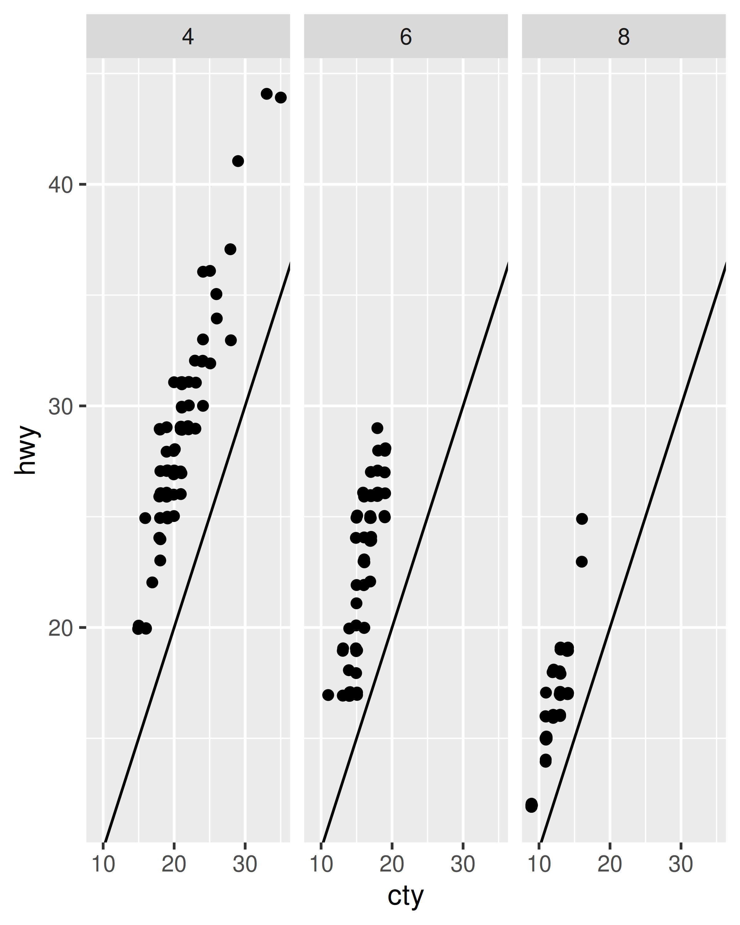 plot <- ggplot(mpg2, aes(cty, hwy)) +