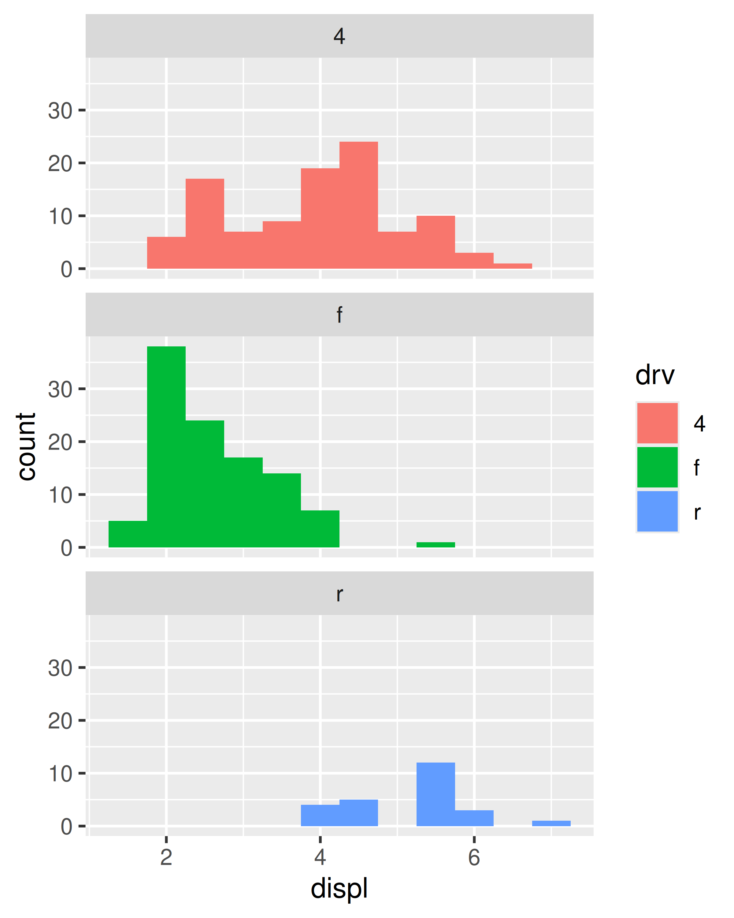 facet_wrap(~drv, ncol = 1)