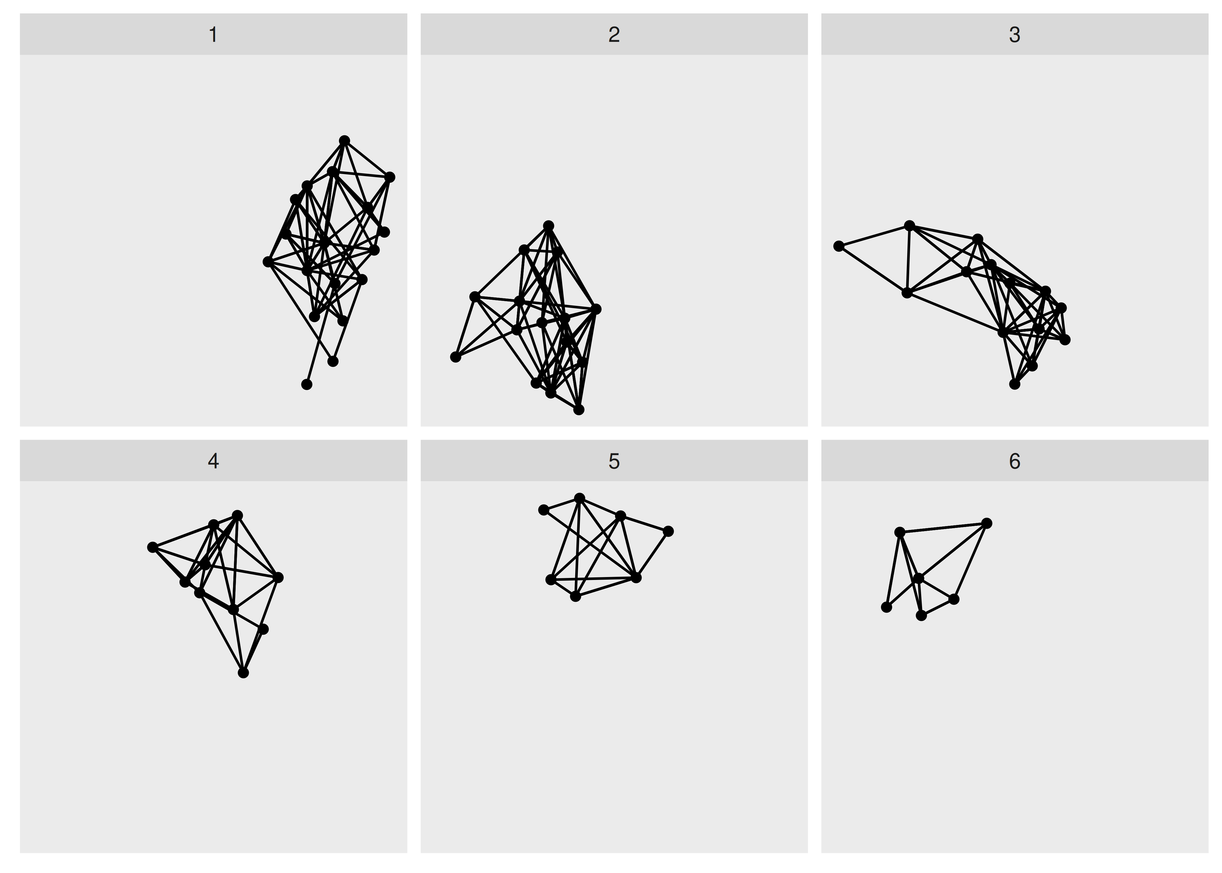 Como el facetado también acepta algoritmos de tidygraph, es una excelente manera de evaluar, p. el resultado de agrupaciones sobre la marcha.