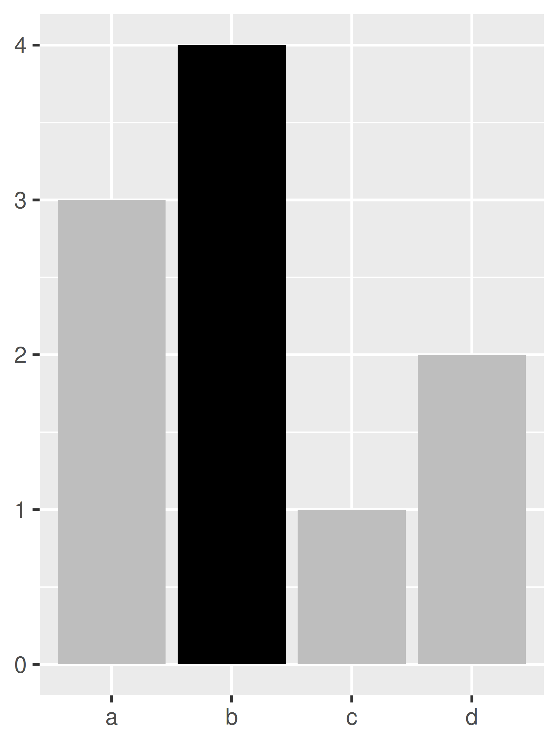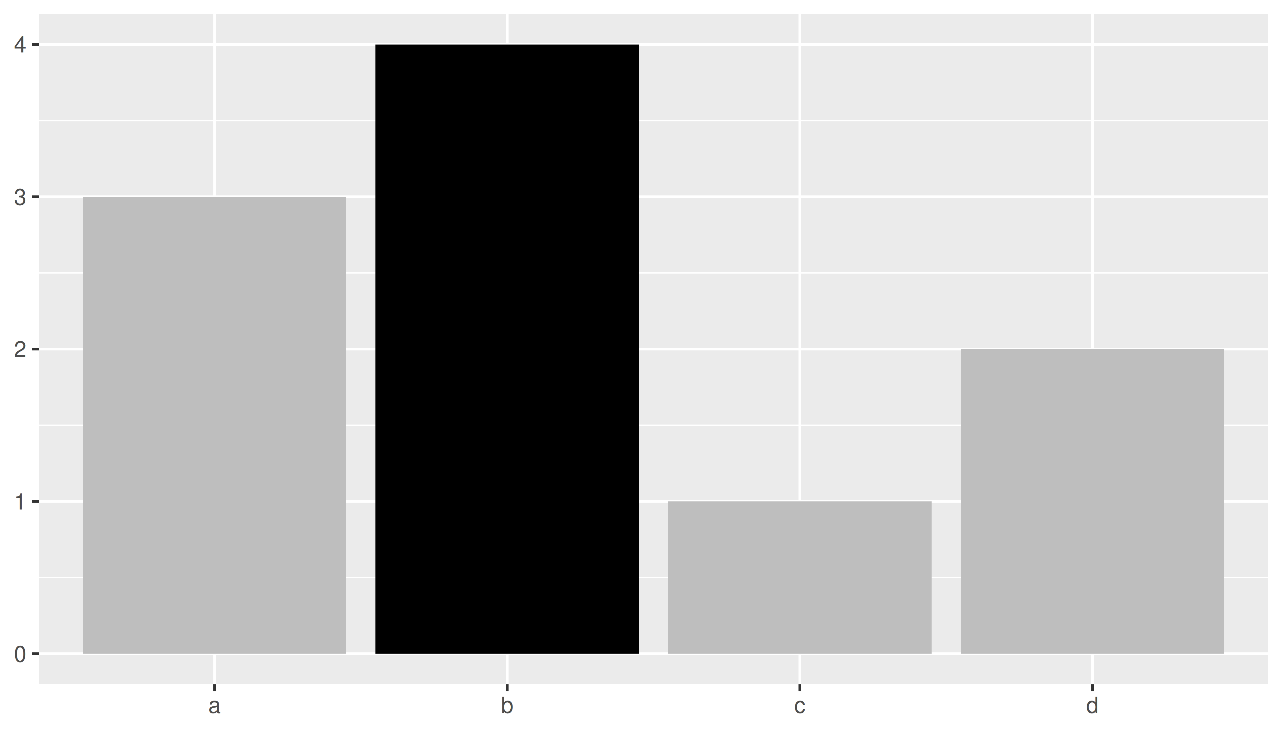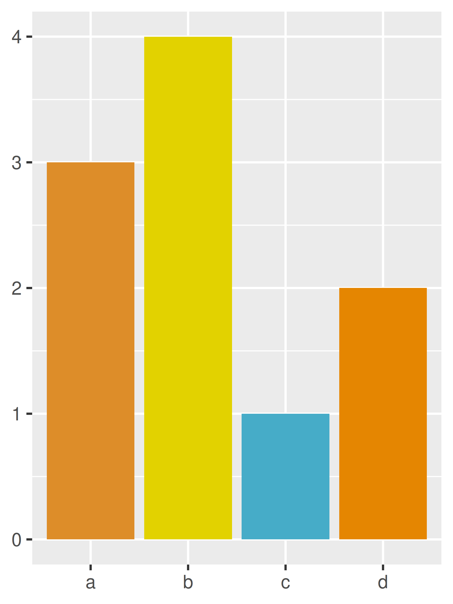 Si ninguna de las paletas preexistentes es adecuada, o si tiene sus propios colores preferidos, puede usar scale_fill_manual() para configurar los colores manualmente. Esto puede resultar útil si desea elegir colores que resalten una estructura de agrupación secundaria o llamen la atención sobre diferentes comparaciones: