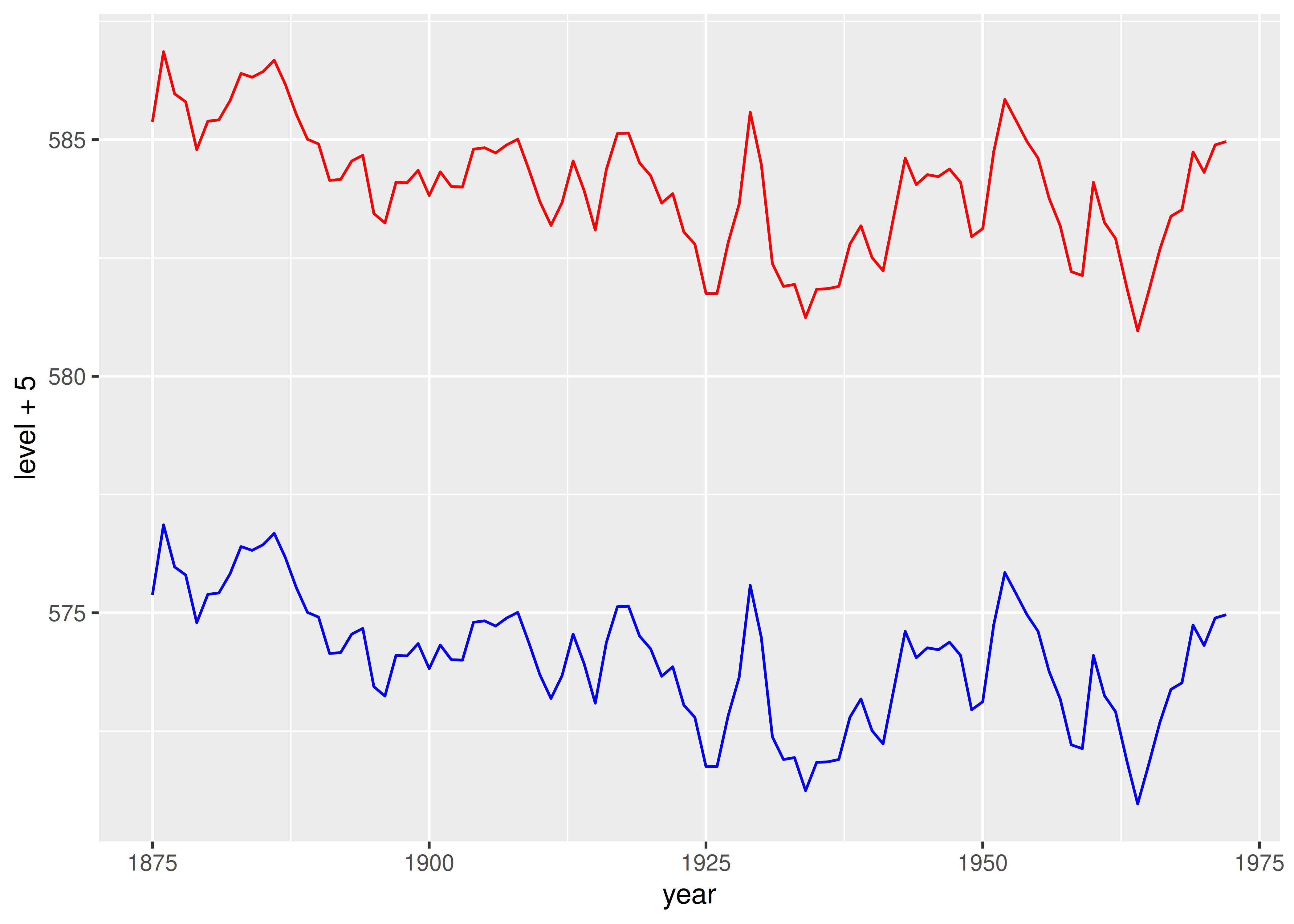 geom_line(aes(y = level - 5), colour = "blue")