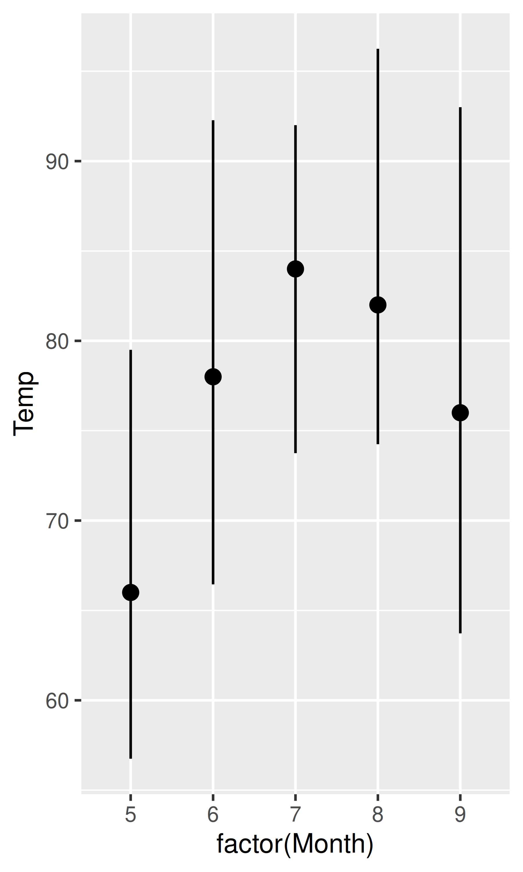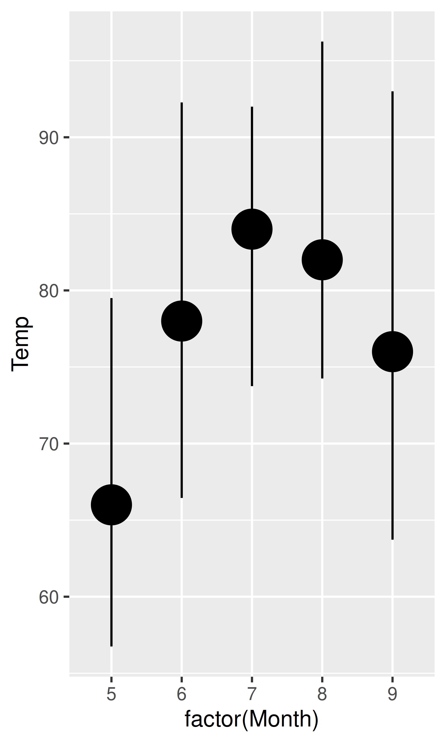 base <- ggplot(airquality, aes(x = factor(Month), y = Temp))