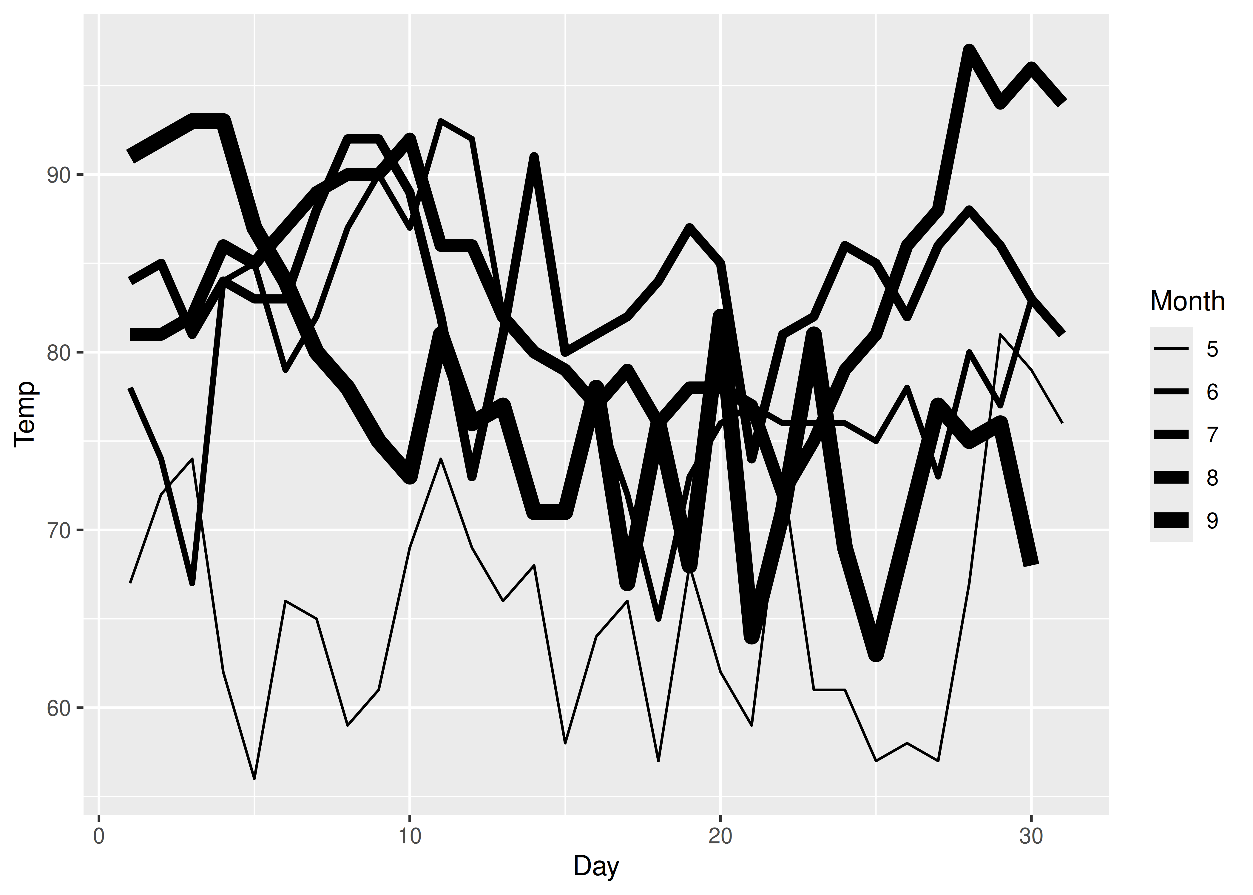 ggplot(airquality, aes(Day, Temp, group = Month)) +