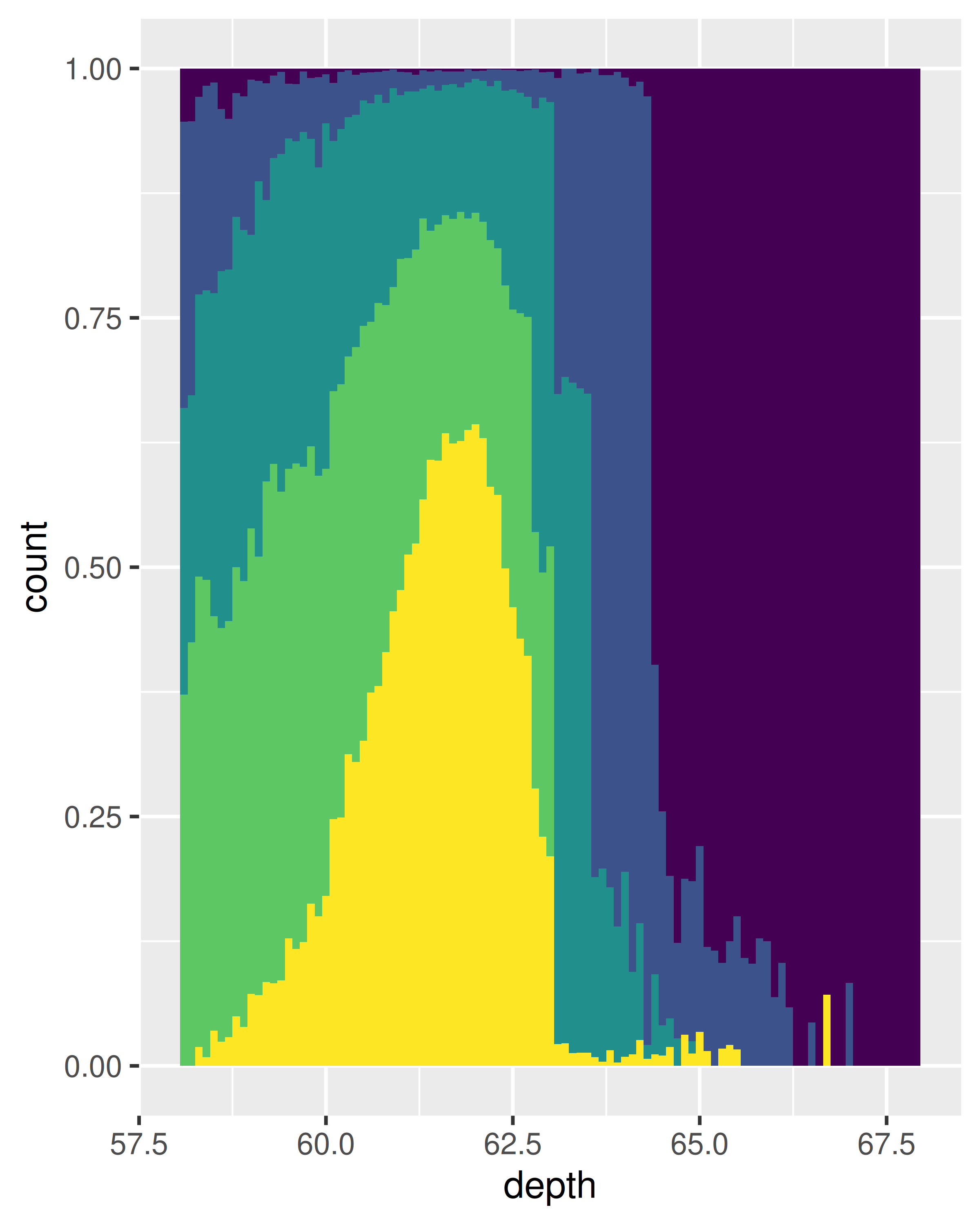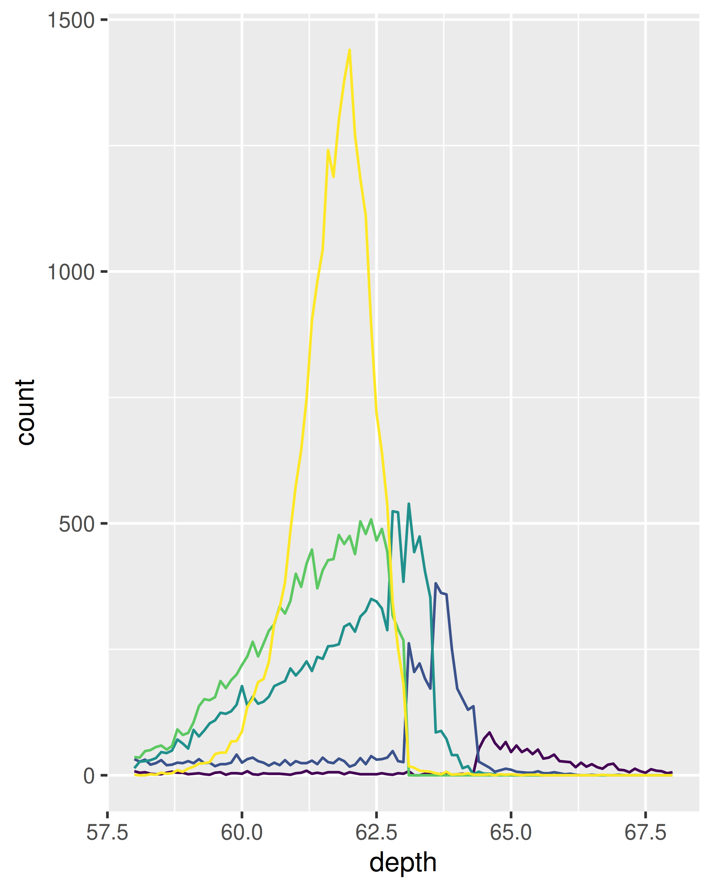 depth. ¿Qué variable calculada necesita asignar aypara que los dos gráficos sean comparables? (Puedes modificargeom_freqpoly()ogeom_density().)
