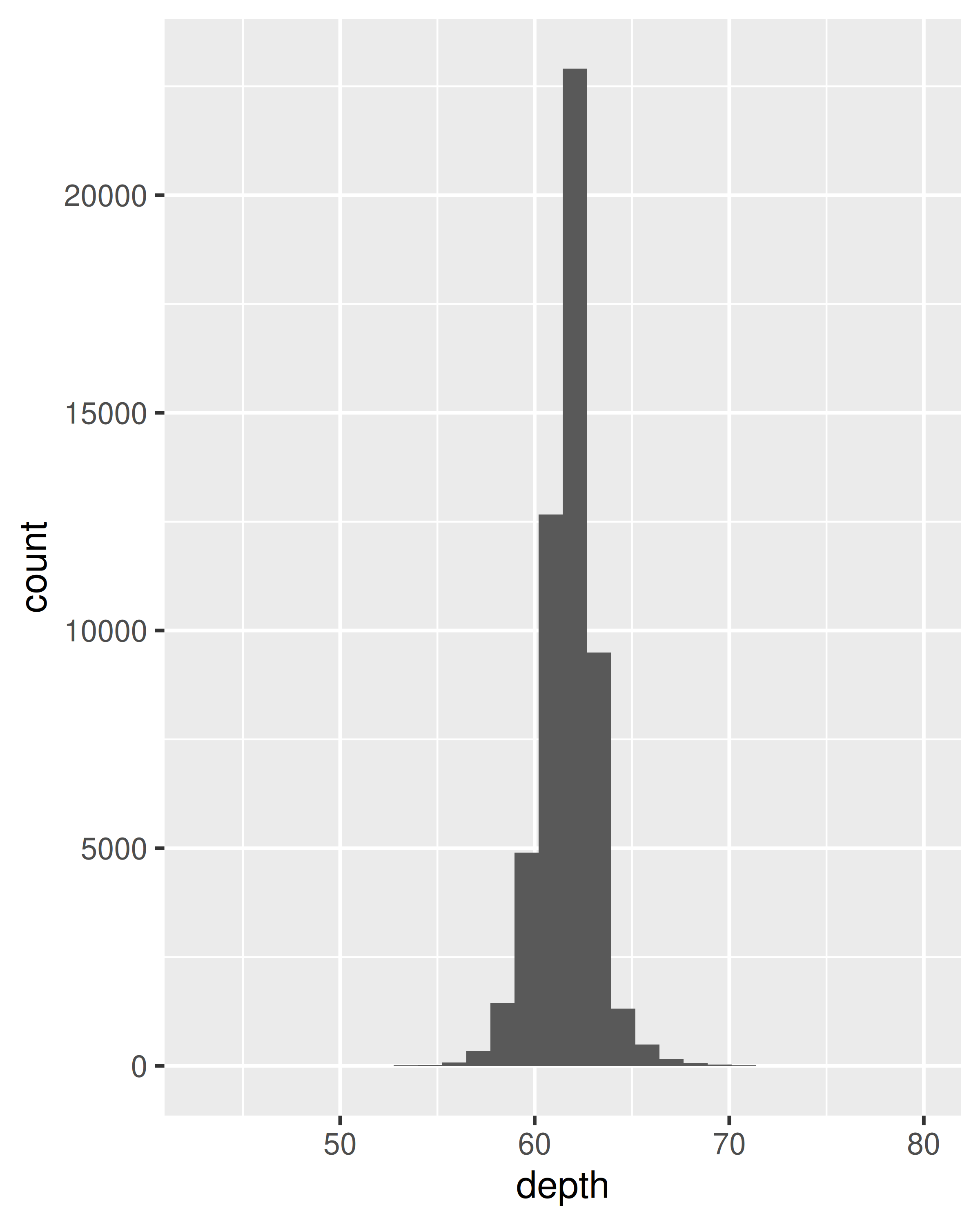 Para distribuciones continuas 1d, la geom más importante es el histograma, geom_histogram():