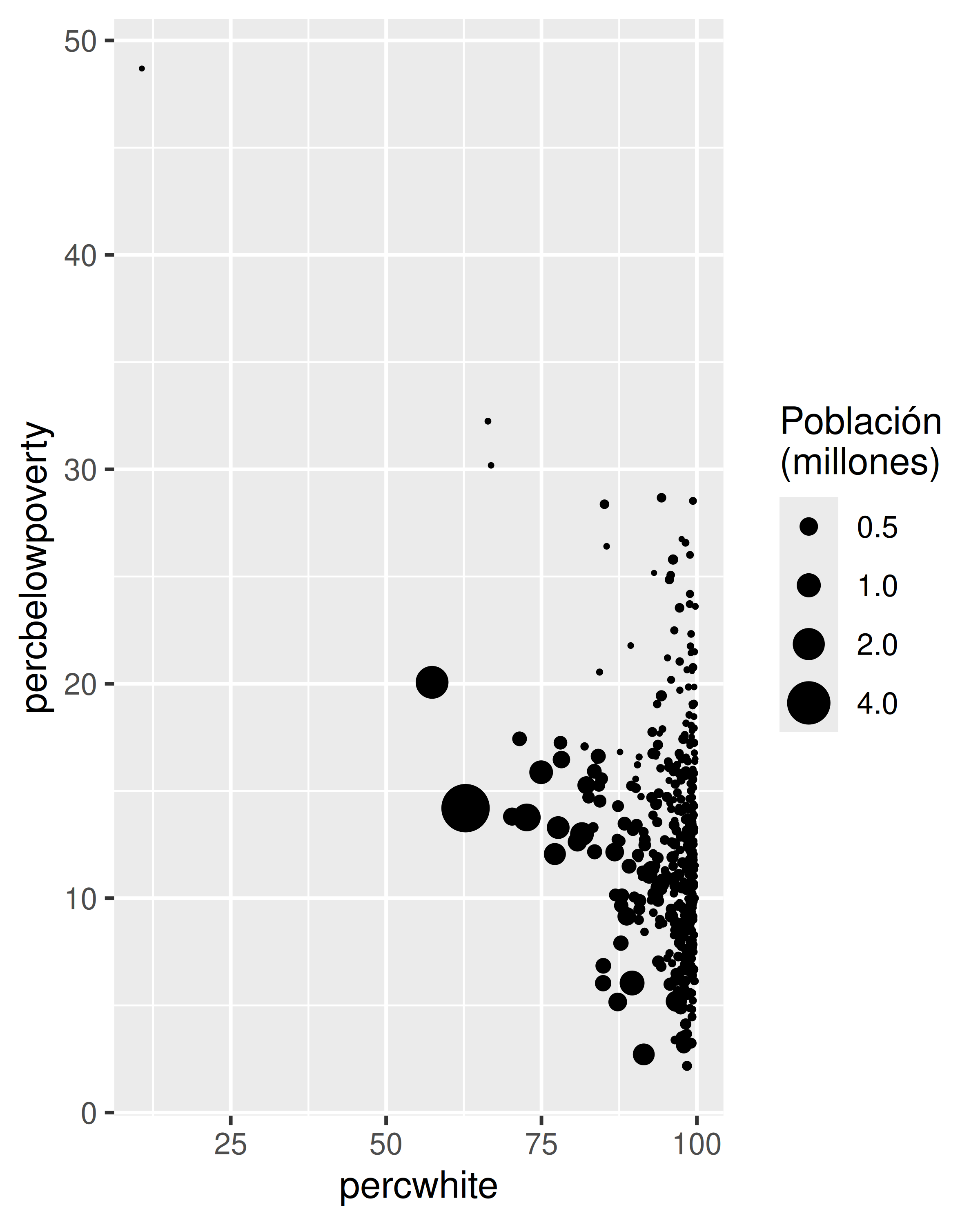 scale_size_area("Población\n(millones)", breaks = c(0.5, 1, 2, 4))