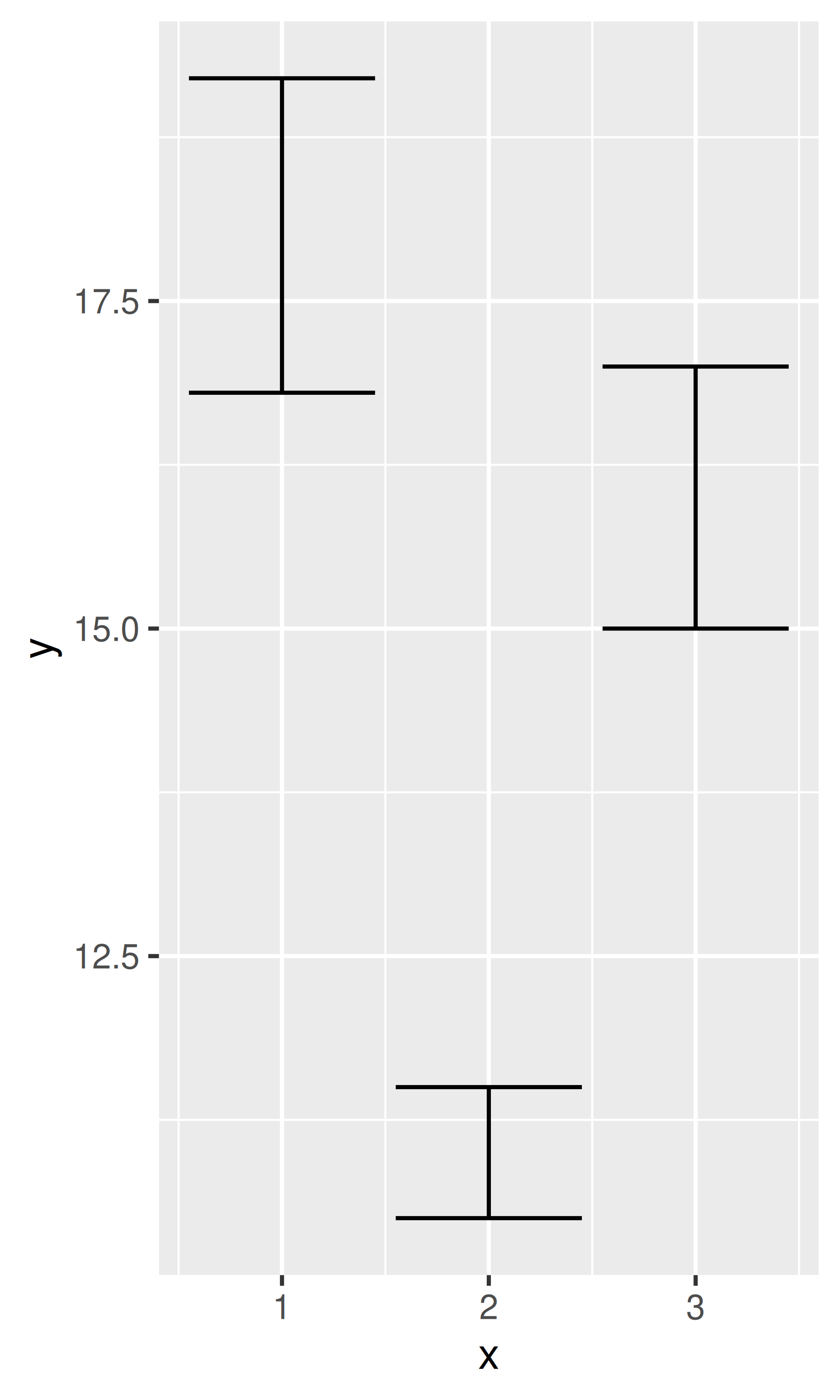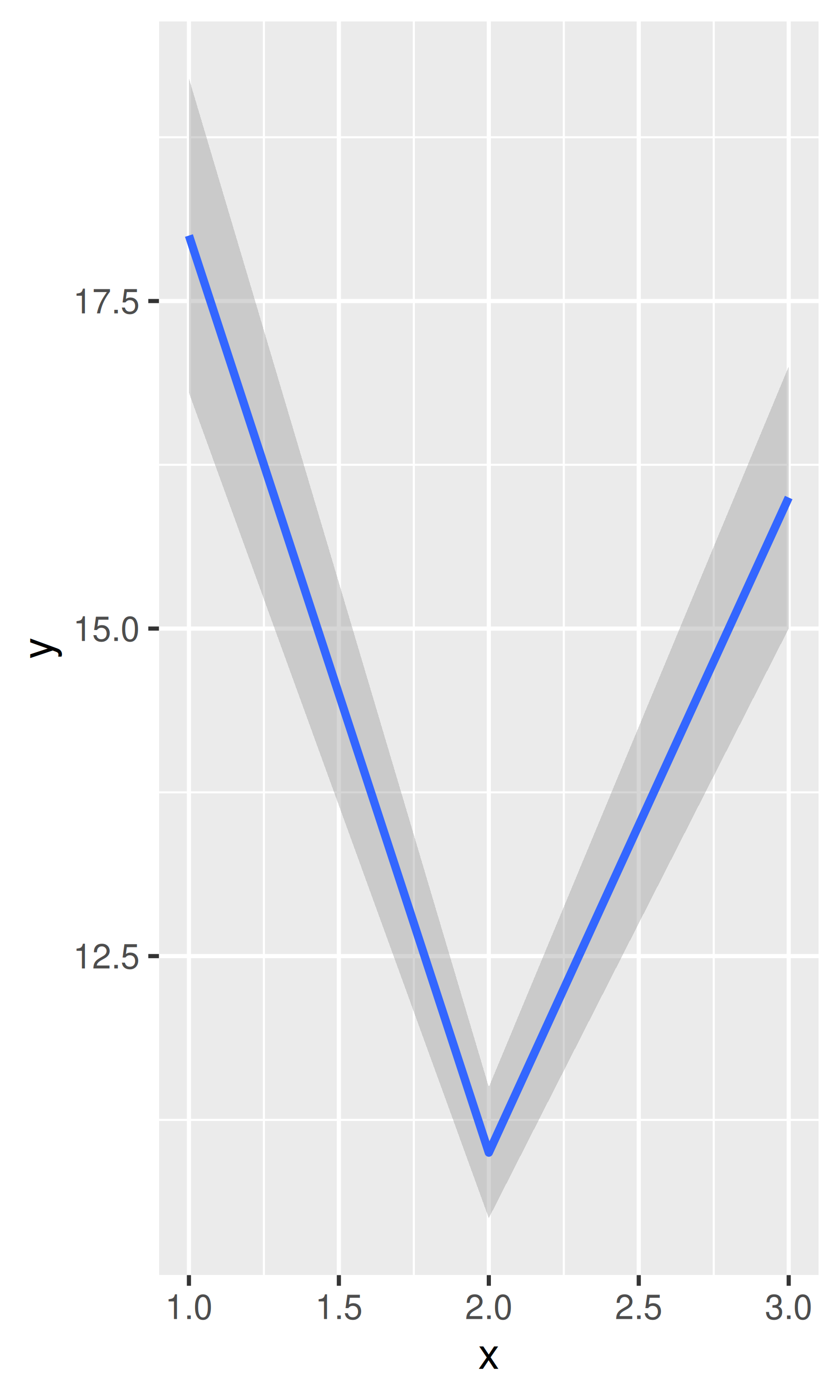 base <- ggplot(df, aes(x, y, ymin = y - se, ymax = y + se))