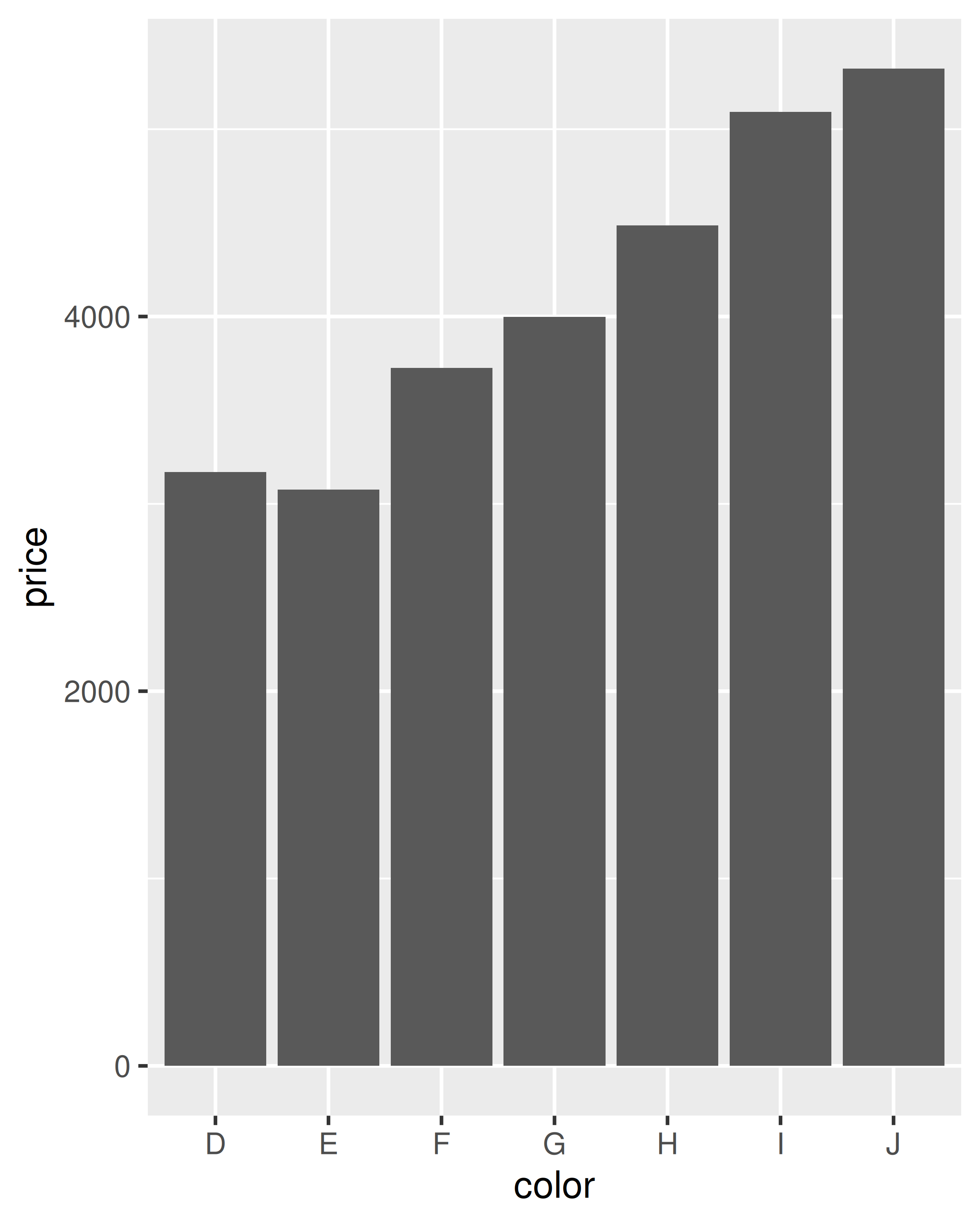 Comencemos con un par de ejemplos con los datos de diamantes. El primer ejemplo de cada par muestra cómo podemos contar la cantidad de diamantes en cada contenedor; el segundo muestra cómo podemos calcular el precio promedio.