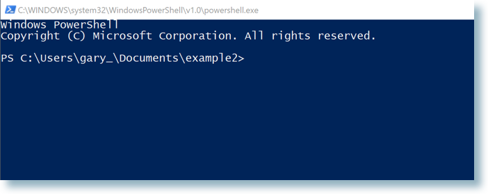 Una sesión de PowerShell que se ejecuta fuera de RStudio se parece a esto:
