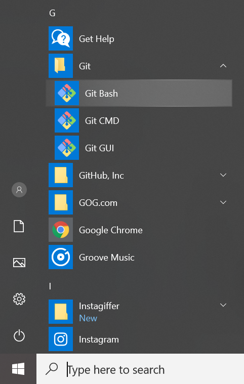 A veces quieres ejecutar Git Bash fuera de RStudio. Esta es la forma más sencilla: haga clic en el menú “Git” en el menú de Windows y seleccione “Git Bash”.