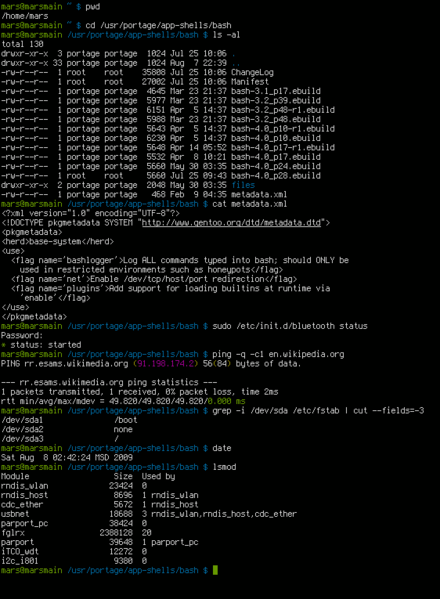 El shell más común es bash y a veces se utiliza como sustituto de “shell”, al igual que “Coke” y “Kleenex” son sustitutos de cola y pañuelos de papel.