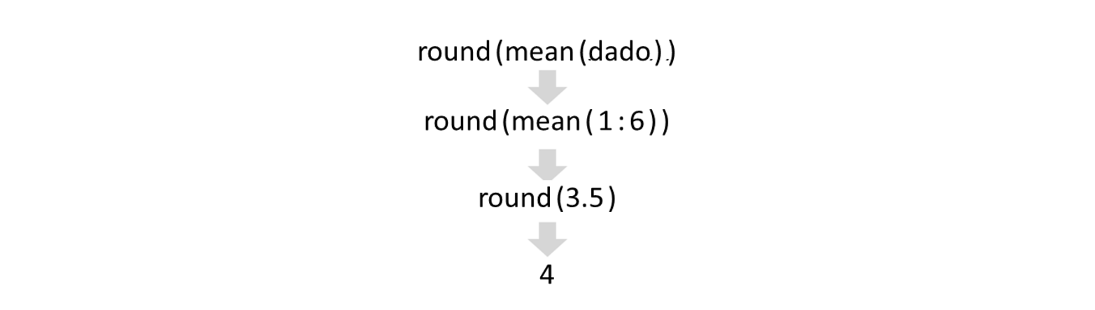 Los datos que pasa a la función se denominan argumento de la función. El argumento puede ser datos sin procesar, un objeto R o incluso los resultados de otra función R. En este último caso, R trabajará desde la función más interna hacia la más externa, como en la Figura Figura 1.5.