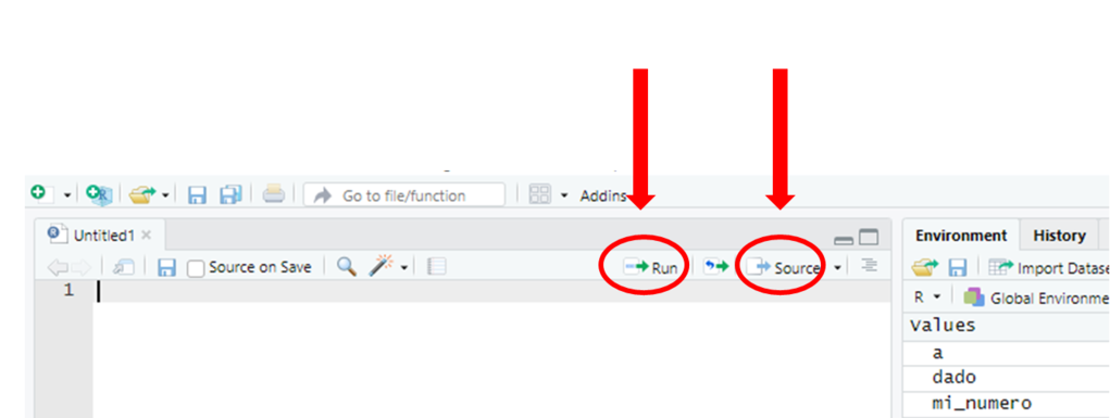 R ejecutará cualquier línea de código en la que esté el cursor. Si tiene una sección completa resaltada, R ejecutará el código resaltado. Como alternativa, puede ejecutar todo el script haciendo clic en el botón Source. ¿No te gusta hacer clic en los botones? Puede usar Control + Enter como acceso directo para el botón Ejecutar. En Mac, eso sería Comando + Enter.