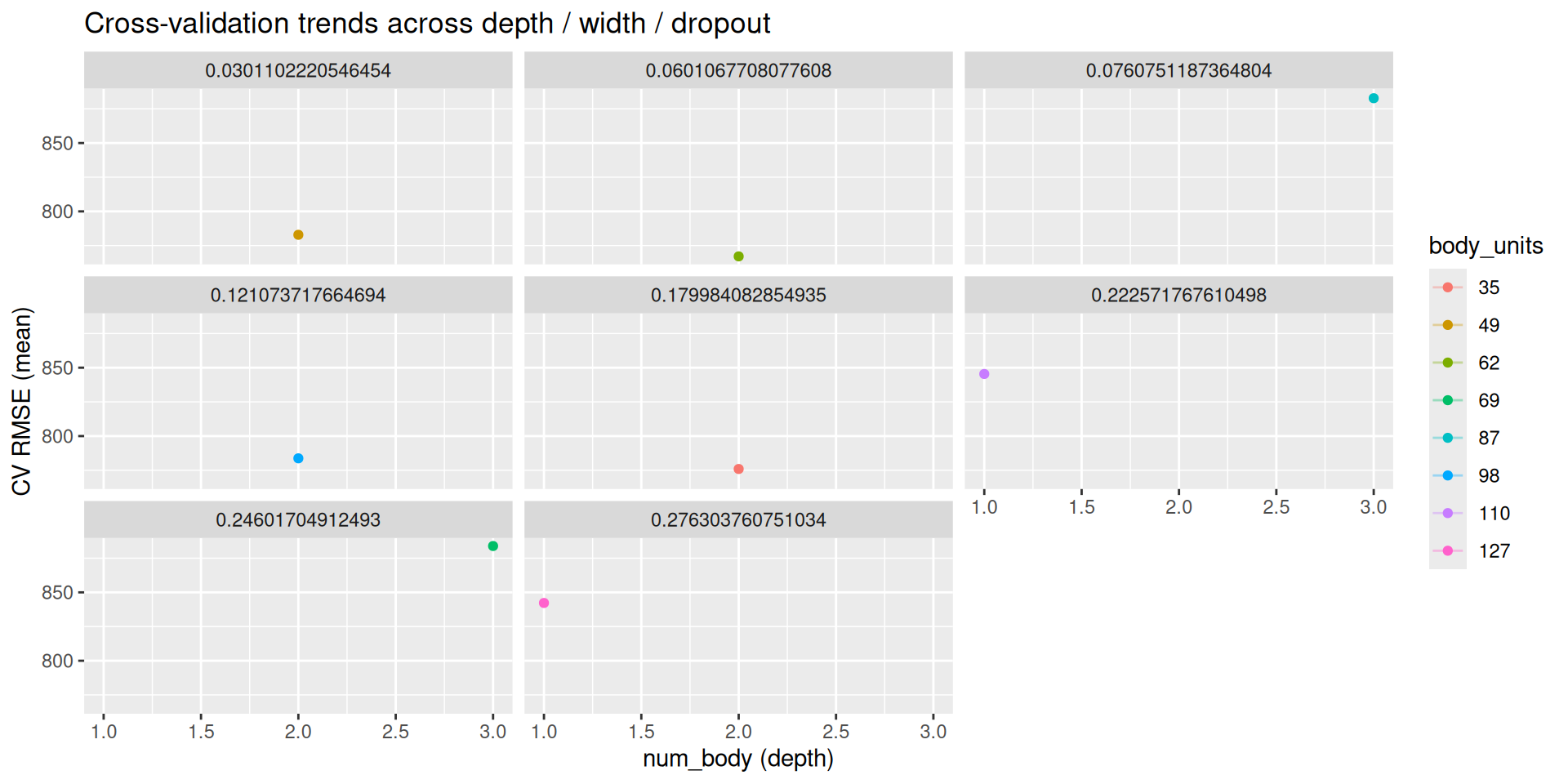 The gap: tune_grid() handles learning rate easily, but tuning model structure: depth, width, branches; is awkward. parsnip expects a fixed set of named arguments; Keras models are arbitrary graphs.