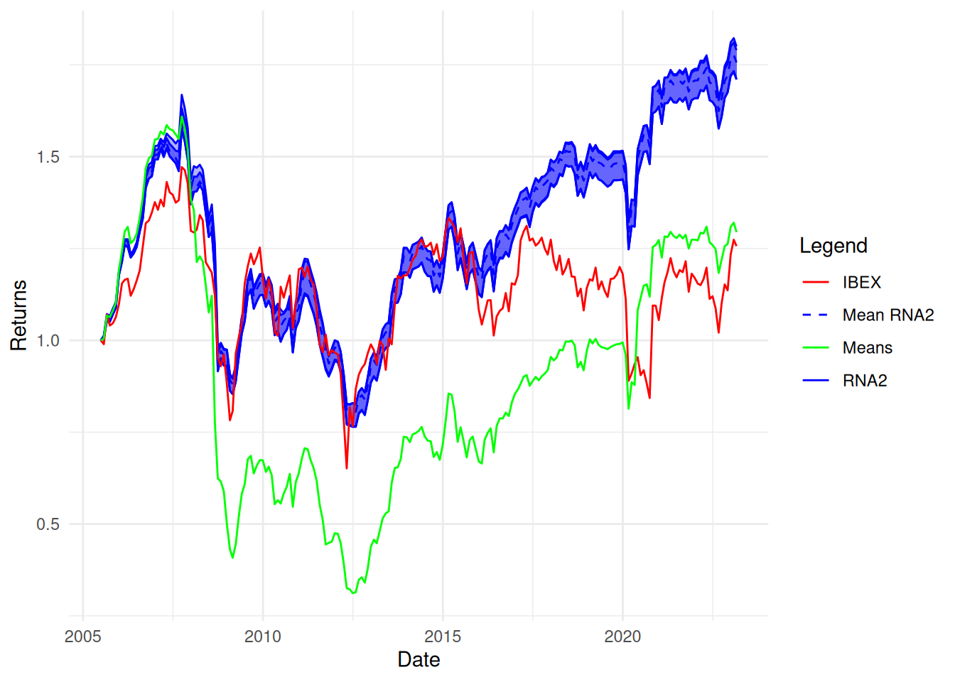 Own elaboration: Through the use of RStudio with the IBEX historical database, obtained from https://finance.yahoo.com/, in the period between 01-2000 to 01-2003.